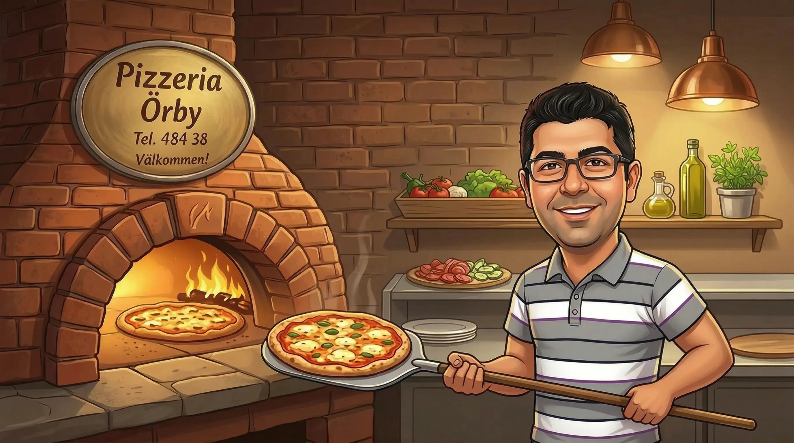 Alpay Görgülüs far öppnade Örby Pizzeria år 1990. Åtta år senare tog Alpay över facklan. Det har i trettiosex år varit en populär plats för lokalbefölkningen. Vi är specialiserade på pizza och kebab — dessutom kan kunderna skapa sina egna pizzor. Den mest populära är Pizza nr 50: "Alpay".